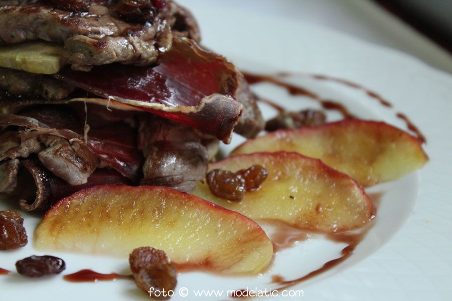- Ensalada con jamón y foie gras, pasas y manzana